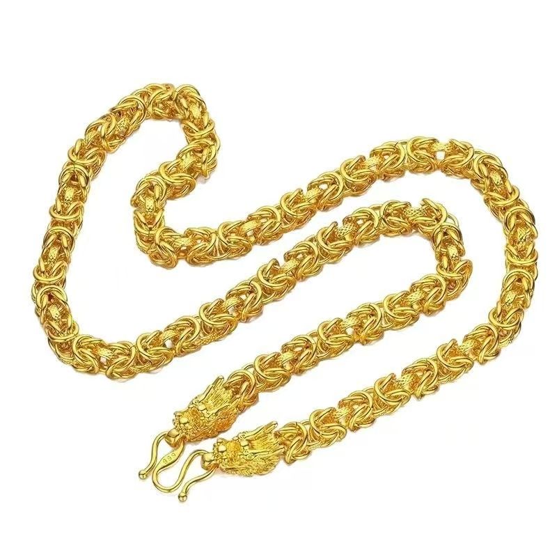 Gold-Plated Necklace with Double-Headed Dragon Design