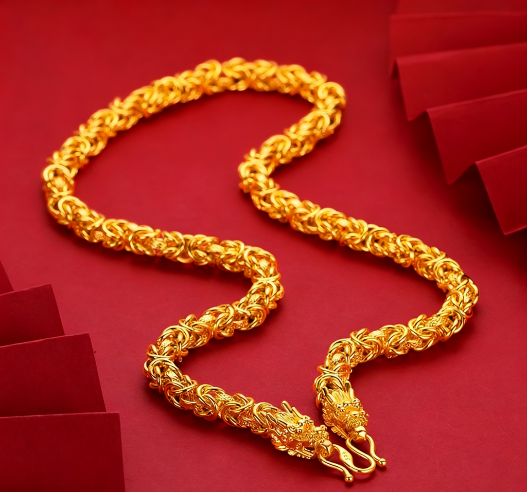 Two roaring dragons lock around your neck—everyone sees the king before they see the man.